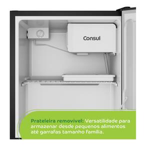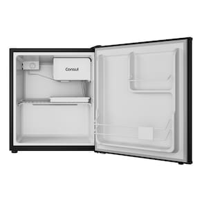Equipado com o sistema de degelo Cycle Defrost, o frigobar Consul facilita a manutencao, reduzindo a necessidade de descongelamento frequente. Apesar de seu tamanho compacto, ele oferece funcionalidades surpreendentes, como dispenser de agua e gelo, alem de um porta-latas pratico para organizar suas bebidas favoritas. A prateleira em aco na cor branca adiciona um contraste elegante ao interior do frigobar, otimizando o espaco interno para melhor acomodacao dos itens.