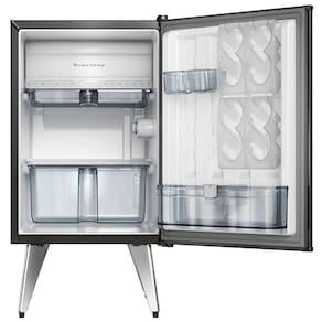O Frigobar Brastemp Retrô 76 litros traz uma lembrança vintage com os pés-palito, com o clássico logo “Brastemp” e o puxador, ambos da marca dos anos 50. Além disso, traz cores que representam o espírito retrô contextualizado a um ambiente contemporâneo.Características do ProdutoConsumo Aproximado de Energia (kWh): 17,5 kWhEficiência Energética: ACapacidade (L): 76 LGrades removíveis: NãoPorta laticínios: NãoPrateleiras: 2 prateleirasRecipiente para guardar gelo: SimAlarme de porta aberta: NãoCompartimento extra frio: SimGavetas: 1 gavetaPorta ovos: NãoPorta latas: SimSeparador de garrafas: SimTecnologia: DefrostPés: SimPorta reversível: NãoControle de temperatura: SimCongelador: SimTrava de segurança: NãoMostrador frontal de temperatura: NãoDimensões do ProdutoAltura: 80,7 cmLargura: 48,2 cmProfundidade: 51,9 cmPeso: 30 kgGarantia do Fabricante: 12 Meses