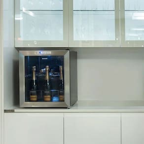 Tornando seu dia ainda mais prático Seja para pegar um copo de água sem precisar ir até a cozinha à noite ou tornar a experiência de seu cliente ainda melhor em seu consultório, o Frigobar da Suggar é o produto ideal! Ele é compacto e pode ser posicionado facilmente sobre bancadas, armários, dentre outros locais. Seus 46 litros de capacidade armazenam sem dificuldade garradas de água, latas de refrigerante, furtas e muito mais, conservando-os na temperatura ideal.