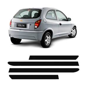 Friso Lateral Celta 2 portas 2006 a 2015 preto Kit Friso Lateral para o Chevrolet Celta 2009 a 2015 2 Portas. CARACTERÍSTICAS: Referência: 3124A Cor: Preto Fosco Material: Plástico ABS Comprimento: 103 cm maior / 44 cm menor Largura: de 4 cm a 5 cm progressivo Espessura: 1 cm todos Aplicação: Autocolante incluido fita dupla face Marca: Top Mix ITENS INCLUSOS: - Um 1 kit de Friso Lateral com Quatro 4 Partes. Eu clicando em comprar 1 unidade equivale ao jogo de frisos Resposta: sim O friso é resistente a água e calor Resposta: O friso é de alta qualidade e bem resistente. Tem Resposta: Sim, total para defeitos de fabricação. Serve em outro carro além dos descritos no anuncio Resposta: Recomendamos a instalação somente no carro descrito acima. A foto é real do produto Resposta: sim a foto é real do produto apenas com fundo branco. INSTALAÇÃO A instalação é feita de forma simples, podendo ser feita por você mesmo. de 6 meses para defeitos de fabricação. SOBRE O ENVIO Envio podendo ser feito até o próximo dia útil após confirmação de pagamento. em até 3 , em caso de boleto POLÍTICA DE TROCA Sempre estamos interessados em sua satisfação. Caso não receba o produto exatamente como no anúncio, com algum defeito ou no transporte, Você poderá trocar e devolver a qualquer momento, sem pressa, sem prazo e principalmente sem custos desde que o produto esteja sem uso e na mesma condição da data da compra . No caso de devolução por compra de tamanho errado, desistência ou mudança de intenção, Neste caso o cliente deve arcar com o custo da devolução da mercadoria e nós arcamos com o custo de reenvio Da mercadoria nova. Marca: Não Informado