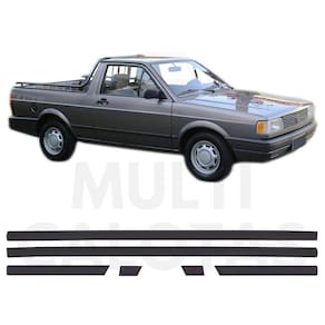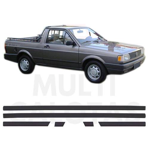Kit Friso Lateral para o Volkswagen Saveiro CL 1989 a 1995. Contém: - Dois 2 Frisos Grandes para as portas - Dois 2 Frisos Medios que vão a tras da porta - Dois 2 Frisos Pequenos que vão a frente da porta Referência: 540A Cor: Cinza Fosco Material: Borracha Injetada Comprimento: 117 cm grande / 38 cm medio / 8 cm pequeno Largura: 4 cm todos Espessura: 1,5 cm todos Aplicação: Autocolante incluido fita dupla face Marca: Top Mix