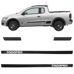 Produto de excelente qualidade, fabricado sob medida para o seu veículo. Friso lateral para o volkswagen saveiro trooper g5 2009 a 2012 Características: - confeccionado em plástico resistente - modelo específico para o veículo - fixado por fita autocolante incluido - cor: preto fosco base - referência: 582a Itens inclusos: - um 1 kit com quatro 4 frisos laterais de 6 meses para defeitos de fabricação. Marca: Não Informado