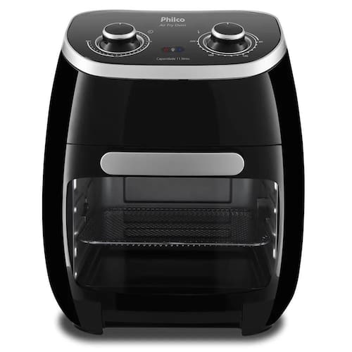 Fritadeira 2 em 1 Air Fry Oven Forno 11L PFR2000 Philco 220v Toda a agilidade e as vantagens da tecnologia Air Fry aliadas à versatilidade do forno elétrico. A fritadeira Air Fry Oven PFR2000P vai mudar completamente sua maneira de cozinhar. Ela frita sem óleo, assa com perfeição e abre infinitas possibilidades na cozinha A PFR2000 tem 1700W de potência e você pode utilizar como Air Fry ou forno. A função Air Fry faz com que o ar quente envolva os alimentos por completo, garantindo o cozimento perfeito. Além disso, forma aquela casquinha crocante por fora O forno é indispensável na cozinha e abre infinitas possibilidades para suas receitas. Ela tem 11 litros de capacidade total, fazendo dela uma verdadeira gigante da sua categoria. Você tem espaço de sobra para preparar todos os tipos de delícias. Ela tem controle de temperatura de 80C a 200C e timer de até 60 minutos com alarme sonoro e desligamento automático. A PFR2000 acompanha 3 assadeiras de diferentes alturas e um coletor de gordura. Sua porta é removível para facilitar a limpeza e os preparos. Ela conta com uma lâmpada interna, ativada por painel touch. Para a sua segurança, ela tem proteção contra superaquecimento. DIFERENCIAIS - Frita com pouquíssimo ou nenhum óleo - Seletor de temperatura com ajuste de 80 a 200C - Timer de 60 minutos - Capacidade 11L - Luz vermelha indicadora de funcionamento - Luz azul indicadora de aquecimento - Base antiderrapante - Proteção contra superaquecimento - Luz interna - Botão touch para acionamento da luz interna - Composição: Metal e Plástico - Garantia de 1 Ano DADOS TÉCNICOS - Voltagem: 220v - Capacidade L : 11 - Garantia Dias : 365 - Tipo: Sem óleo - Cor: Preta - Potência W : 1700 - Função timer: Sim - Controle de temperatura: 80 a 200C - Dimensões do produto AxLxP : 38x32,4x35 cm - Peso: 6,14kg ACESSÓRIOS: - 2 assadeiras com 20cm de profundidade - 1 assadeira com 30cm de profundidade - 1 coletor de resíduos