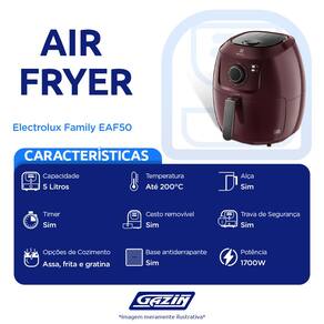 Fritadeira Air Fryer Electrolux 5L 1700W EAF50/51 - Dark Red 110V