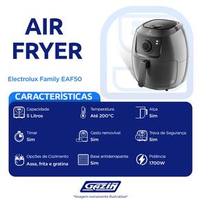 Sua vida ainda mais saudável com a nova fritadeira Elétrica Electrolux EAF50! Agora você pode preparar seus aluimentos de uma forma mais saudável e fácil, com uma super capacidade de 5 L, espaço não vai ser problema no momento de assar, gratinar ou fritar suas comidas preferidas. Confira mais detalhes: