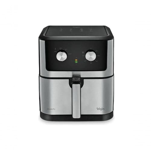 Fritadeira Air Fryer Elgin AFC80 com capacidade de 8 litros, potência de 1900W, tecnologia Air Circuit 360, revestimento antiaderente Black Resist, cesto removível e lavável, timer de 60 minutos e temperatura ajustável de 80 a 200C.Porta-fio