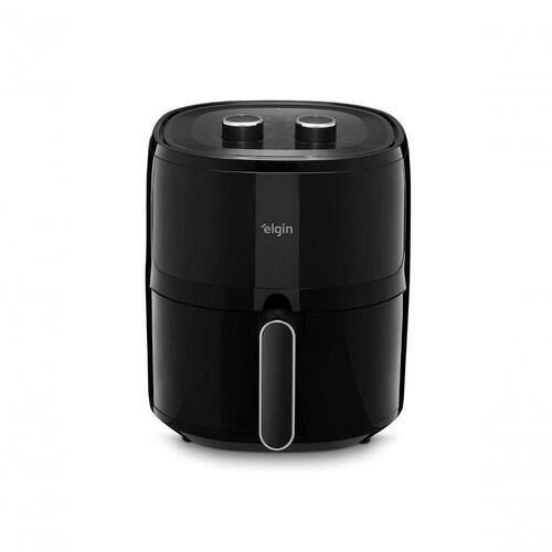 Fritadeira Air Fryer Elgin Space 5 AFC50 com capacidade de 5L, 1700W de potência, tecnologia Air Circuit 360, cesto removível com revestimento antiaderente Black Resist, controle de temperatura de 80 a 200C, timer de até 60 minutos e proteção contra superaquecimento.Desligamento automático