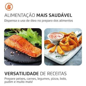 Utilizando circulação de ar quente em alta velocidade, o equipamento prepara alimentos mais crocantes e saborosos com pouca ou nenhuma adição de óleo, tornando as refeições mais saudáveis.