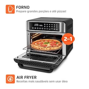 Com tecnologia 2 em 1 air fryer e forno em um só produto ela permite preparar receitas saudáveis, crocantes e douradas, com muito menos óleo e muito mais amor. Tudo isso com design moderno, painel digital intuitivo e capacidade para toda a família.