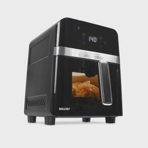 Fritadeira Air Fryer Mallory Turbocook com visor em vidro, capacidade de 6 litros, controle de temperatura ajustável e timer. Permite acompanhar o preparo dos alimentos sem abrir o cesto.Porta-fio