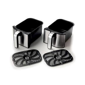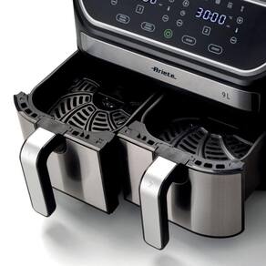 Fritadeira Air Dual 9L MetalPara quantidades duplas de frituras ou cozimento de alimentos separados Sem problema, graças aos 2 cestos antiaderentes, indicado para peixes fritos, carnes, croquetes, batatas fritas e empanados. Com a Fritadeira Air Fryer Dual Metal você pode fritar qualquer prato em quantidade dupla, usando apenas uma colher de sopa de óleo para obter frituras saudáveis e saborosas ao mesmo tempo. Graças aos 2 cestos separados, 4,5 litros cada, com Air Fryer Dual Metal da Ariete você pode cozinhar até 3,6 kg de batatas fritas de uma só vez Mas não só batatas fritas Também croquetes, peixes, carnes e muitos outros alimentos empanados, congelados prontos para fritar, e frescos e recém-empanados, graças a 11 programas predefinidos. Como funciona a Air FryerGraças à alta temperatura do ar a Air Fryer cozinha os alimentos com o ajuste de 35C até 200C, que circula 360 em alta velocidade dentro da câmara de cozimento e garante uma distribuição uniforme do calor no interior. É justamente o ar quente que permite um cozimento homogêneo dos pratos e a formação de uma crosta crocante por fora, que não deixa nada a desejar à fritura tradicional. Graças ao ar quente, não haverá necessidade de adicionar tanto óleo para obter uma fritura saborosa, porque uma simples colher será suficiente, desta forma você trará para a mesa alimentos mais leves, mas saborosos para toda a família. Você pode cozinhar dois pratos diferentes ao mesmo tempo ou cozinhar um prato em grandes quantidades, dividindo-o em 2 cestos com a função Dual Cook. Jantares ou almoços com pratos diferentes Não se preocupe com o tempo: com a função Sync você pode cozinhar 2 pratos diferentes e garantir que eles estejam prontos ao mesmo tempo. Especificações:modelo: 4625Cor: Preto e prataPotência: 2100WVoltagem: 220VCapacidade total: 9L, dois cestos de 4,5L cadaCapacidade das cestas básicas: 3,6 kg 1,8kg x 2 Cestos removíveis antiaderentes: 2Funções: Zona dupla, cozinheiro duplo, sincronizaçãoPainel digital: LED toque11 programas predefinidos: SimTemporizador: Até 60 minutosTemperatura ajustável: 35C - 200CLivro de receitas incluído: SimDimensões C x A x L : 41,5cm x 32cm x 35,5cmPeso do produto: 7,6 KgPeso da caixa: 8,4 Kg SKU: 00C462500ARBREAN: 8003705121386