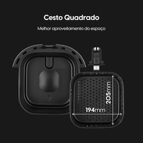 Experimente a tecnologia Black Resist, que oferece uma proteção antiaderente superior e facilita a limpeza e a manutenção no dia a dia. A tecnologia Air Circuit 360°C proporciona uma circulação de ar quente em espiral, resultando em alimentos assados de forma uniforme, sem a necessidade de fritar. Isso torna suas refeições mais saudáveis, com até 80% menos gordura, rápidas e econômicas em termos de energia. Com o diferencial do cesto quadrado, você pode preparar porções maiores sem ocupar excessivamente sua bancada.