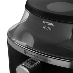 A frigideira digital Philips Walita possui capacidade para 7,2 litros, é touchscreen de fácil uso com 12 funções pré-programadas para escolher: batatas fritas congeladas, batatas fritas frescas, coxas de frango, carne, peixe, café da manhã, vegetais, muffins, vegano, frutas desidratadas, manter aquecido e um botão favorito onde você pode salvar sua própria configuração personalizada.