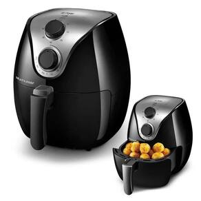 Fritadeira sem óleo com superfície antiaderente, filtro de ar para evitar maus cheiros, lâmpada piloto, timer de 60 minutos com aviso sonoro e desligamento automático, controle de temperatura até 200°C, cuba removível, acabamento black piano, alça fria e pés antideslizantes.Porta-fio