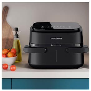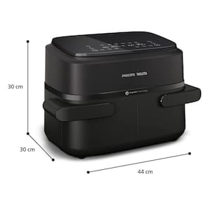 Com capacidade total de 7,1L, que pode ser dividida em dois compartimentos de 3,55L, você tem flexibilidade para cozinhar diferentes pratos ao mesmo tempo.