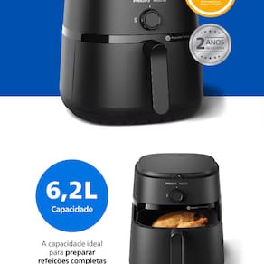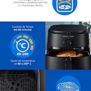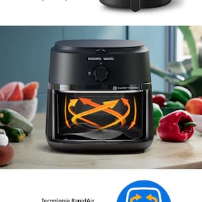 Airfryer com circulação de ar quente, controle de temperatura, timer e cesto removível antiaderentePorta-fio