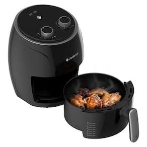 Fritadeira sem óleo com capacidade de 3,8 litros, potência de 1300W, timer de 60 minutos e controle de temperatura de 80°C a 200°C. Possui grelha removível e design compacto.Porta-fio