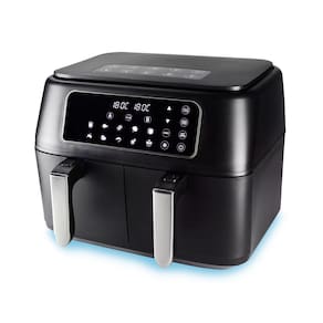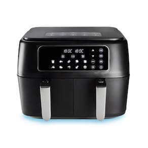 Fritadeira de duplo cesto com painel digital inteligente e 12 funções pré-programadas. Permite preparar duas receitas diferentes ao mesmo tempo. Compartimento antiaderente e de fácil limpeza., Fritadeira de duplo cesto com painel digital inteligente e 12 funções pré-programadas. Permite preparar duas receitas diferentes ao mesmo tempo. Compartimento antiaderente e de fácil limpeza.Desligamento automático