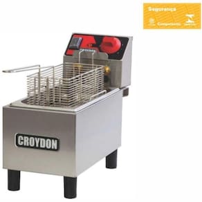 Fritadeira Elétrica 3 Litros 1 Cesta FC1A Croydon. Ideal para lanchonetes, padarias, restaurantes e similares. Equipamento compacto e robusto, indicado para uso constante, mantendo a temperatura ideal para garantir sabor e textura nos alimentos. Estrutura em aço inox, cuba resistente e cesto de fritura prático. CUBA: 1 GN 1/2. CAPACIDADE DE ÓLEO: 3L. PRODUÇÃO MÁXIMA: 12kg/h. POTÊNCIA: 2000W. CORRENTE: 9,1A. CONSUMO: 1,0kWh. PESO BRUTO: 4,7kg. DIMENSÕES(CxAxL): 45x34x19cm. Fritadeira Elétrica 3 Litros 1 Cesta FC1A Croydon é na Atau.