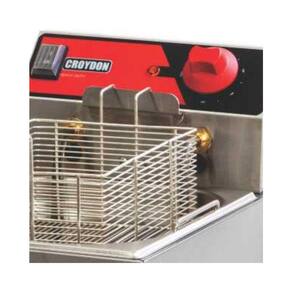 Fritadeira Elétrica Croydon com capacidade de 4,5 litros, gabinete e cuba em aço inox, cesto em arame estanhado, potência de 1700W (110V) ou 2900W (220V), ideal para uso comercial e doméstico.Porta-fio
