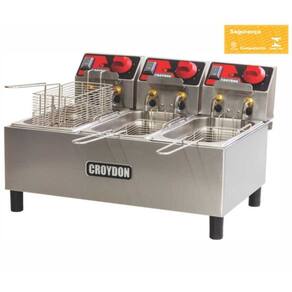 Fritadeira Elétrica 9 Litros 3 Cestos FC3A Croydon. Ideal para lanchonetes, padarias, restaurantes e similares. Equipamento robusto com três cubas independentes, proporcionando versatilidade, permitindo preparar três diferentes itens simultaneamente, sem misturar sabores, além de fácil limpeza e manutenção. Estrutura em aço inox, cuba resistente e cesto de fritura prático. CUBAS: 3 GN 1/3. CAPACIDADE DE ÓLEO: 3x3l. PRODUÇÃO MÁXIMA: 36kg/h. POTÊNCIA: 3x2000W. CORRENTE: 3x9,1A. CONSUMO: 3x1,0kWh. PESO BRUTO: 11,5kg. DIMENSÕES(CxAxL): 45x34x54cm. Fritadeira Elétrica 9 Litros 3 Cestos FC3A Croydon é na Atau.