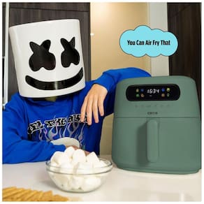 A fritadeira elétrica sem óleo CRUX x Marshmello de 3 litros foi projetada para preparo de alimentos com circulação de ar quente, utilizando aquecimento por resistência de 1300W e controle eletrônico de tempo e temperatura. O sistema TurboCrisp otimiza o fluxo de ar interno para obter crocância externa e aquecimento uniforme dos alimentos, atendendo porções para aproximadamente 2 a 4 pessoas.