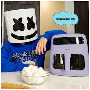 Fritadeira elétrica air fryer digital 8L CRUX x Marshmello lavanda TurboCrisp 1750W com controle de temperatura e timer programável, 110V