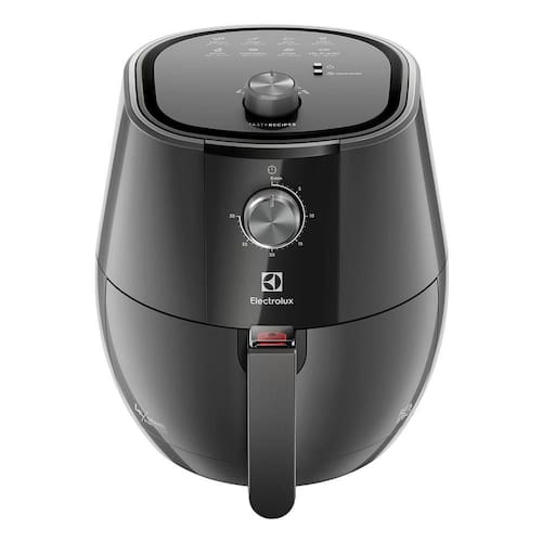 Prepare receitas deliciosas e muito mais saudáveis com a Fritadeira Elétrica Air Fryer Electrolux EAF30! Com cuba de 4,5 litros tota l, que oferece um cesto com capacidade de 4 litros de capacidade útil, é possível preparar diversas receitas de uma única vez, com q uase 90% a menor de gordura e 50% a menos de calorias. A air fryer oferece saborosas refeições com textura e sabor de frito, utiliza ndo pouca ou nenhuma quantidade de óleo.O botão seletor de temperatura e timer da Fritadeira Elétrica Air Fryer EAF30 facili tam muito mais na hora de escolher a temperatura e o tempo de preparo, garantindo que você tenha deliciosos resultados. Com potência de 1400W e receitas pré-programadas, a Air Fryer Electrolux traz praticidade na hora de preparar deliciosos pratos. O desligamento automático acontece assim que o tempo predefinido se esgota, oferecendo segurança para sua cozinha. O aparelho conta ainda com indic ador em LED branco, que permite identificar quando está em funcionamento.Comer Bem e SaudávelNa correria do dia a di a dificilmente conseguimos parar para cozinhar e acabamos consumindo alimentos processados e industrializados, deixando de lado hábi tos saudáveis de alimentação. Sabemos a importância de preparar refeições com ingredientes naturais e o quanto isso afeta nossa saúd e diretamente em vários aspectos. Por isso é essencial ter utensílios que facilitem nosso dia a dia, nos permitindo comer bem e ainda economizar um tempinho para descansar. Experimente a Fritadeira Elétrica Air Fryer Electrolux EAF30 Preta e prepare suas recei tas de maneira saudável e sem adição de gordura!
