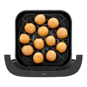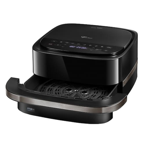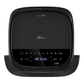 Fritadeira elétrica com 4L de capacidade. Possui dupla resistência (superior e inferior), função Dual Grill, controle Touch screen, painel digital com 8 receitas pré-programadas, ajuste de temperatura de 40 a 230°C e timer de 60 minutos com desligamento automático. Funções Reaquecer, Desidratar e Pizza. Cesto removível e antiaderente com suporte interno removível. Lâmpada para visualização do assado.Desligamento automático