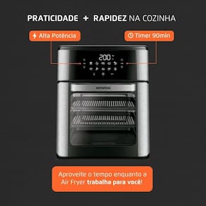 - Praticidade e Rapidez na Cozinha: A Tecnologia de Circulação de Ar Quente e a alta potência possibilitam rapidez no preparo das receitas. Aliado a isso, a função Timer de 90 minutos proporciona a liberdade para você se dedicar a outras tarefas enquanto a Air Fryer trabalha para você;