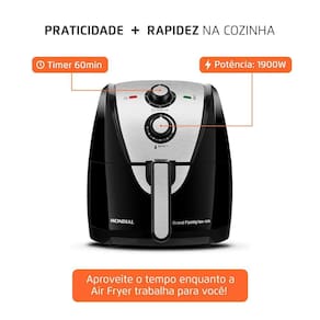 DESIGN COMPACTO: A Air Fryer Mondial tem um design compacto e ocupa espaço reduzido na bancada da cozinha.