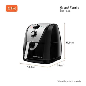 CAPACIDADE DE 5,5 LITROS + CESTO QUADRADO: O formato do cesto acomoda melhor os alimentos, permitindo assar por igual. Além disso, proporciona um maior aproveitamento do espaço do cesto.