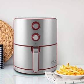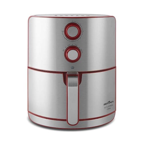 Fritadeira Elétrica Britânia Air Fryer com capacidade de 4,6L, potência de 1500W, ajuste de temperatura de 80 a 200ºC, base antiderrapante, cuba e grelha antiaderente e desligamento automático.Porta-fio