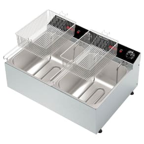 Fritadeira elétrica dupla com 2 cubas de 5 litros cada, totalizando 10 litros. Possui potência de 6000W, controle automático de temperatura e resistência blindada.Porta-fio