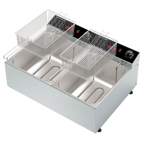 A Fritadeira Elétrica Dupla Saro 10 Litros é ideal para lanchonetes, restaurantes, food trucks e cozinhas industriais que buscam agilidade e qualidade na preparação de alimentos fritos. Com duas cubas de 5 litros e resistência de alta potência, ela garante frituras mais rápidas e crocantes, mantendo a temperatura estável com controle automático. Seu sistema com resistência blindada proporciona excelente desempenho com baixo consumo de energia, tornando a operação mais eficiente e econômica. Compacta e robusta, é fabricada para suportar o uso intenso intenso e entregar resultados consistentes.