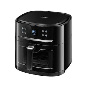Fritadeira elétrica com capacidade de 8L, controle touch screen, painel digital, função pausar, 12 receitas pré-programadas, cesto removível, suporte interno removível, cesto com visor transparente.Porta-fio