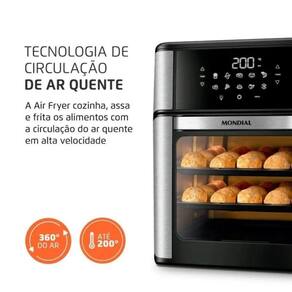 A Air Fryer AFO-12L-BI da Mondial é uma combinação de Fritadeira a Ar e forno, proporcionando a capacidade de assar, cozinhar e fritar sem óleo, o que contribui para receitas mais saudáveis. Com uma capacidade total de 12 litros, é possível preparar grandes porções de uma só vez.