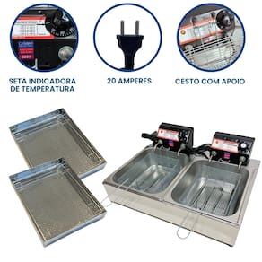 Cuba 10 Litros + 2 Escorredores M + 2 Tampas. Sistema antichamas. Termostato Ajustável: De 50°C a 300°C. Uso: Comercial e Residencial.Porta-fio