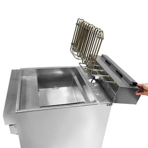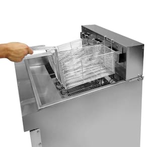 - Como funciona o sistema de fritura desta fritadeira elétrica industrial?
