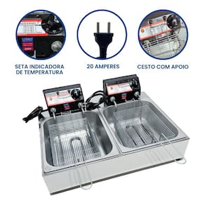 Fritadeira Elétrica Industrial Antichamas 2 Cubas 10 Litros