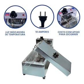 Cuba 3 Litros + Tampa A Fritadeira Elétrica Industrial Cuba 3 litros é mais do que apenas um equipamento profissional, é uma solução completa para quem busca praticidade e qualidade na hora de preparar alimentos. Você pode ter a experiência de um chef de cozinha em sua própria casa ou no seu comércio, sem precisar gastar uma fortuna em equipamentos caros. Nossas fritadeiras são fabricadas com os materiais da mais alta qualidade do mercado, para garantir que você tenha um produto durável e principalmente seguro. Características que Fazem a Diferença: Capacidade Total da Cuba: 3 Litros (óleo + alimentos)Capacidade de Óleo: 1,5 litrosTermostato Ajustável: De 50°C a 300°C, com regulagem precisa Instruções Rápidas para Uso: Nunca ligue a fritadeira sem óleo.Atenção com temperaturas acima de 200°C, pois podem causar queima do óleo.Para medir o óleo, faça a medição com água, sempre com a fritadeira desligada.Atenção: Nunca misture água e óleo e nunca ligue a fritadeira com água. Especificações Técnicas: Voltagem: 110V (1.600W) ou 220V (1.600W)Tomada: 10ADimensões: Altura: 19cm | Largura: 18 cm | Comprimento: 40cmUso: Comercial e Residencial Conteúdo da Embalagem: 01 Base em aro inox com 4 pés de apoio01 Cabeçote com resistência inox 01 Cesto aramado01 Cuba01 Manual de instruções Marca: Não Informado