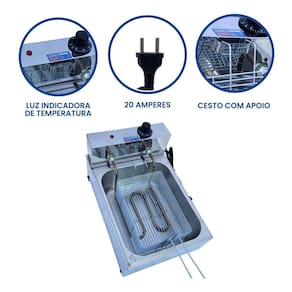 Cuba Inox 5 Litros A Cuba Inox de 5 Litros é a escolha ideal para quem busca eficiência e resistência no preparo de frituras em cozinhas profissionais ou residenciais com alta demanda. Fabricada em inox de alta qualidade, oferece excelente retenção de calor, fácil higienização e longa vida útil, mesmo em uso intenso. Seu formato robusto proporciona firmeza e encaixe seguro em fritadeiras elétricas industriais. Características que Fazem a Diferença: Capacidade Total da Cuba: 5 Litros (óleo + alimentos)Capacidade de Óleo: 2,5 litrosTermostato Ajustável: De 50°C a 300°C, com regulagem precisa Instruções Rápidas para Uso: Nunca ligue a fritadeira sem óleo.Atenção com temperaturas acima de 200°C, pois podem causar queima do óleo.Para medir o óleo, faça a medição com água, sempre com a fritadeira desligada.Atenção: Nunca misture água e óleo e nunca ligue a fritadeira com água. Especificações Técnicas: Voltagem: 110V (2.500W) ou 220V (3.000W)Tomada: 10ADimensões: Altura: 25 cm | Largura: 28 cm | Comprimento: 40cmUso: Comercial e Residencial Conteúdo da Embalagem: 01 Base em aro inox com 4 pés de apoio01 Cabeçote com resistência inox 01 Cesto aramado01 Cuba01 Manual de instruções Marca: Não Informado