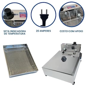 Características Gerais do produto Cuba 5 Litros + Tametrospa + Escorredor M. Fabricada emetros inox de alta qualidade, oferece excelente retenção de calor, fácil higienização e longa vida útil. Termetrosostato ajustável de 50°C a 300°C. Uso cometrosercial e residencial.