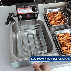 Cuba 5 Litros + Tampa. Sistema antichamas. Termostato ajustável de 50°C a 300°C. Uso comercial e residencial.Porta-fio