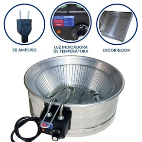Tacho esmaltado com termostato regulável e escorredor médio. Cabos reforçados em inox.Porta-fio