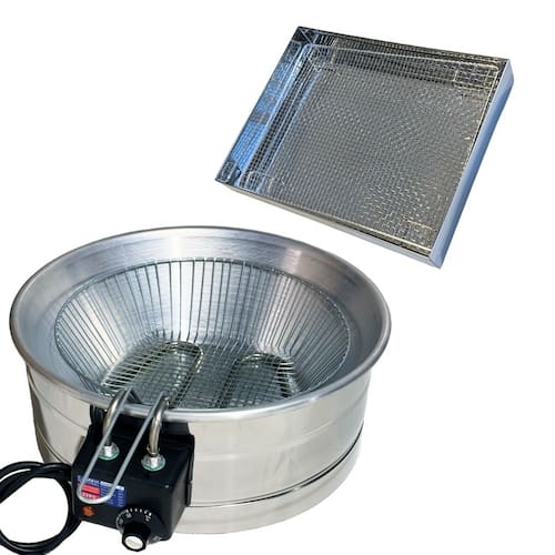 Tacho esmaltado de 10 litros com escorredor médio. Termostato regulável de 50°C a 300°C. Cabos reforçados em inox. Uso comercial e residencial.Porta-fio