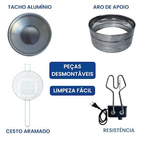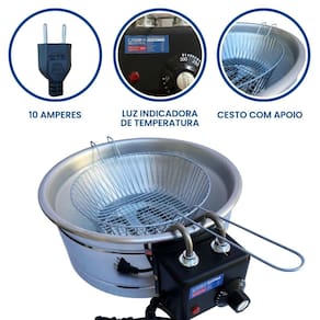 - Quaisquer tipos de alimentos. Salgados, pastel, kibe, mandioca, calabresa, batata, peixes dentre outros. Para pasteis grandes até 24 cm fritar sem o cesto. Usar como tacho de pastelaria.