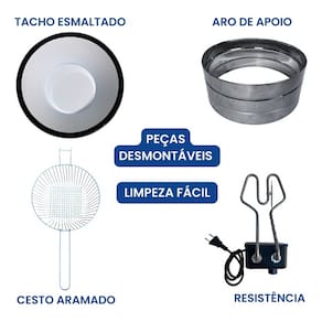 Tacho esmaltado com tampa, termostato ajustável de 50°C a 300°C, ideal para restaurantes, lanchonetes e cozinhas residenciais.Porta-fio