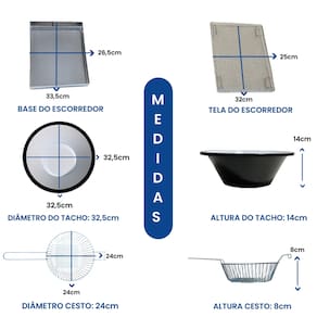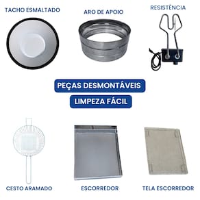 Tacho Esmaltado 5 Litros com Escorredor e Tampa. Termostato ajustável de 50°C a 300°C. Uso comercial e residencial.Porta-fio
