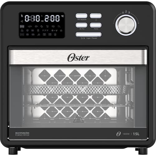 Fritadeira Elétrica Oster Forno Fryer 127V 15L - OFOR160Apresentamos o Forno Fryer Multifunções Compact da renomada marca Oster, um verdadeiro 2 em 1 que revoluciona a forma como você prepara suas refeições! Este poderoso aparelho, com 1600W de potência e capacidade de 15L, é a fusão perfeita entre um forno convencional e uma fritadeira.Com 10 funções manuais, incluindo Fritadeira, Grill, Desidratar, Descongelar, Reaquecer, Forno, Grelhar, Turbo Convection, Torrar e Estufa, você tem o controle total sobre o processo de cozimento. Além disso, conta com 11 funções pré-programadas para pratos como frango, peixe, costela e muito mais, garantindo resultados deliciosos com um simples toque de botão.A função Turbo Convecção é o segredo para cozinhar mais rapidamente e de forma uniforme. A temperatura é distribuída de maneira homogênea por toda a superfície do alimento, garantindo que cada mordida seja perfeita.O design compacto e moderno é complementado por um display digital e painel luminoso, facilitando o controle do tempo e temperatura. Com acabamento fosco e um hack com 4 níveis, este forno fryer não apenas oferece desempenho excepcional, mas também se destaca em elegância.E para a sua comodidade, incluímos acessórios essenciais: bandeja coletora de migalhas, assadeira e coletora de gordura, cesto de fritura e grelha e prateleira. Preparar suas refeições nunca foi tão fácil e versátil.Eleve sua experiência culinária com o Forno Fryer Multifunções Compact Oster - a potência e capacidade na medida certa para sabores irresistíveis!Especificações técnicas:- Modelo: OFOR160 - Cor: Preto- Tensão: 127 V- Potência: 1600 W- Consumo: 1,6 kW/h- Acessórios: Acessórios: Bandeja coletora de migalhas, assadeira e coletora de gordura, cesto de fritura e grelha e prateleira.- Dimensões do produto: 34,5 x 34,5 x 31 cm (AxLxP)- Dimensões da embalagem: 39 x 41,3 x 34,5 cm (AxLxP)- Peso liq: 5,85 Kg- Peso bruto: 7,5 Kg- Garantia: 12 meses